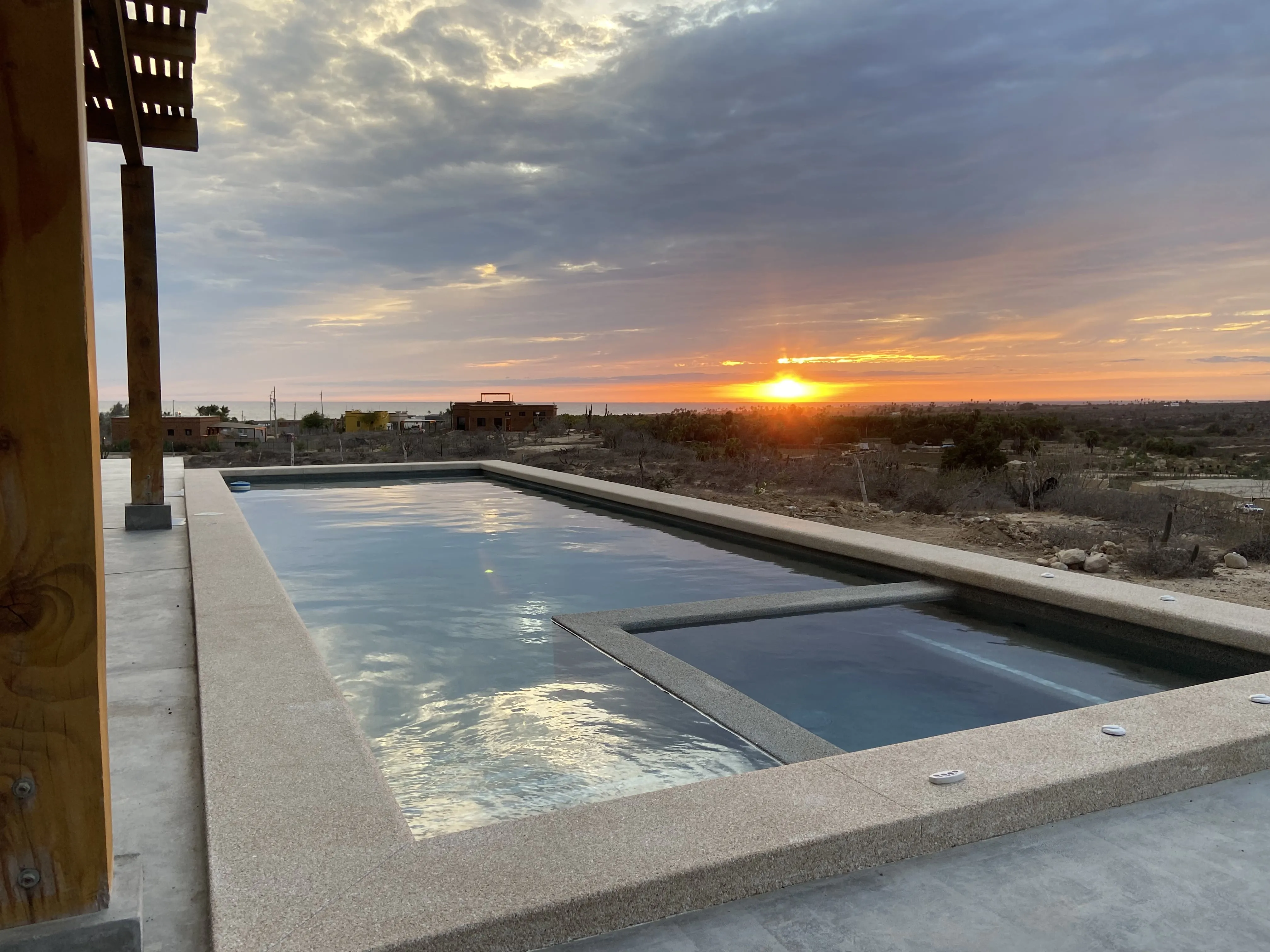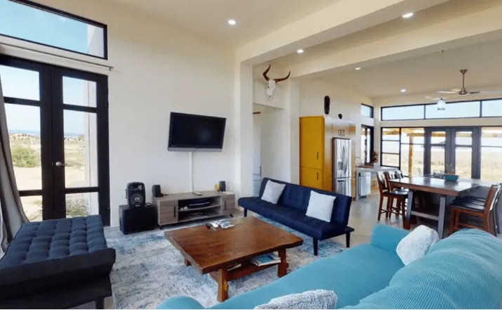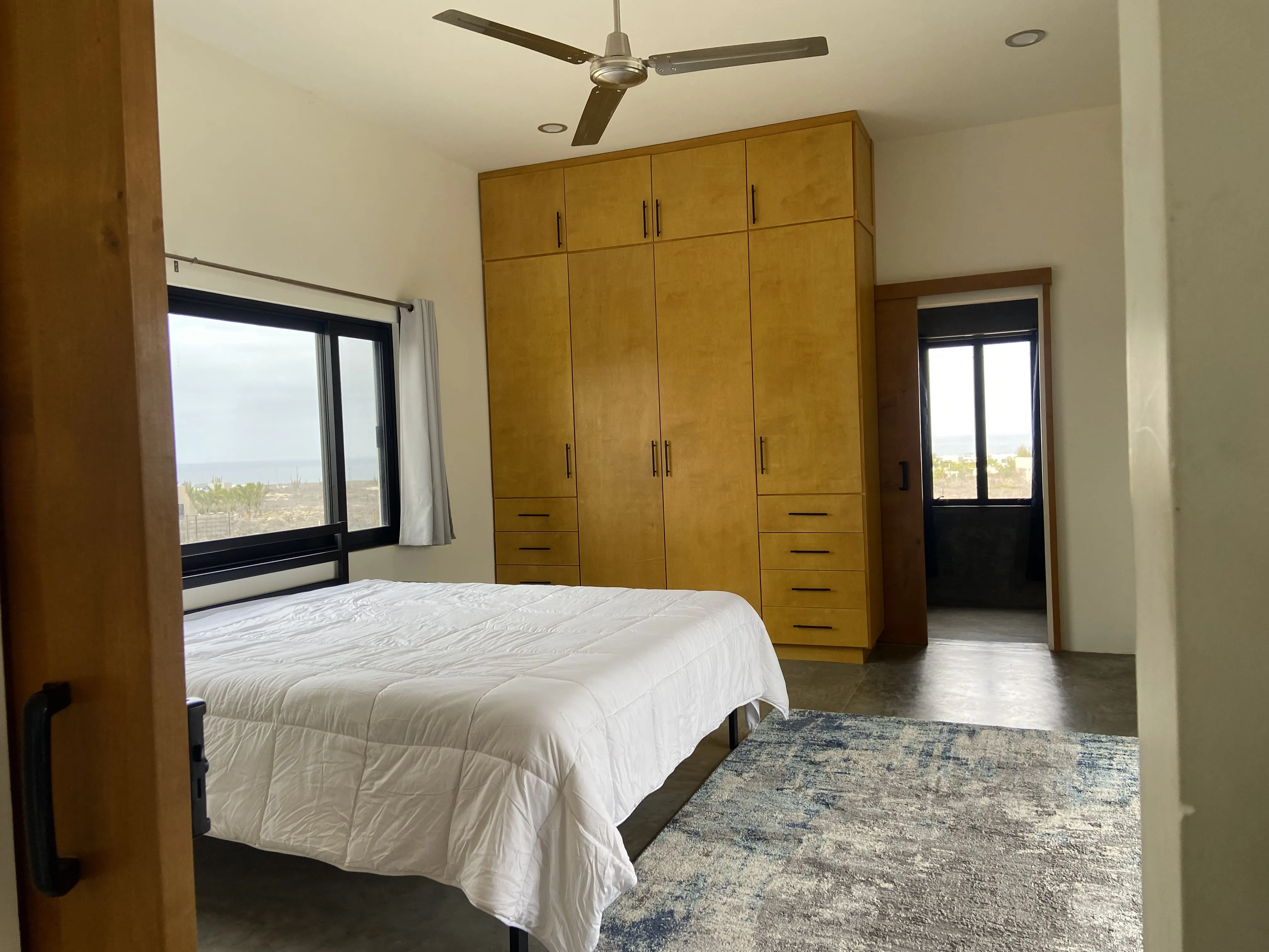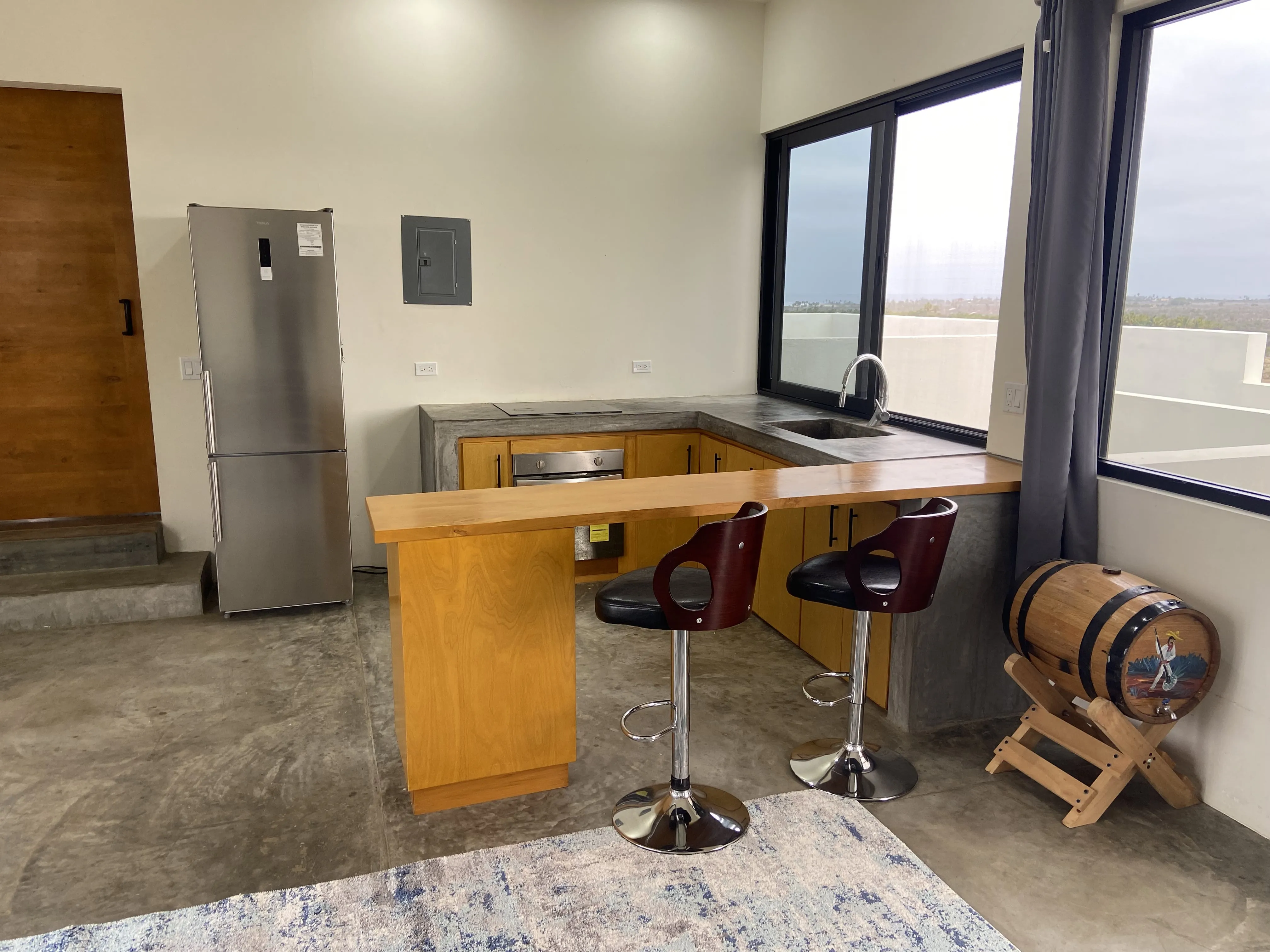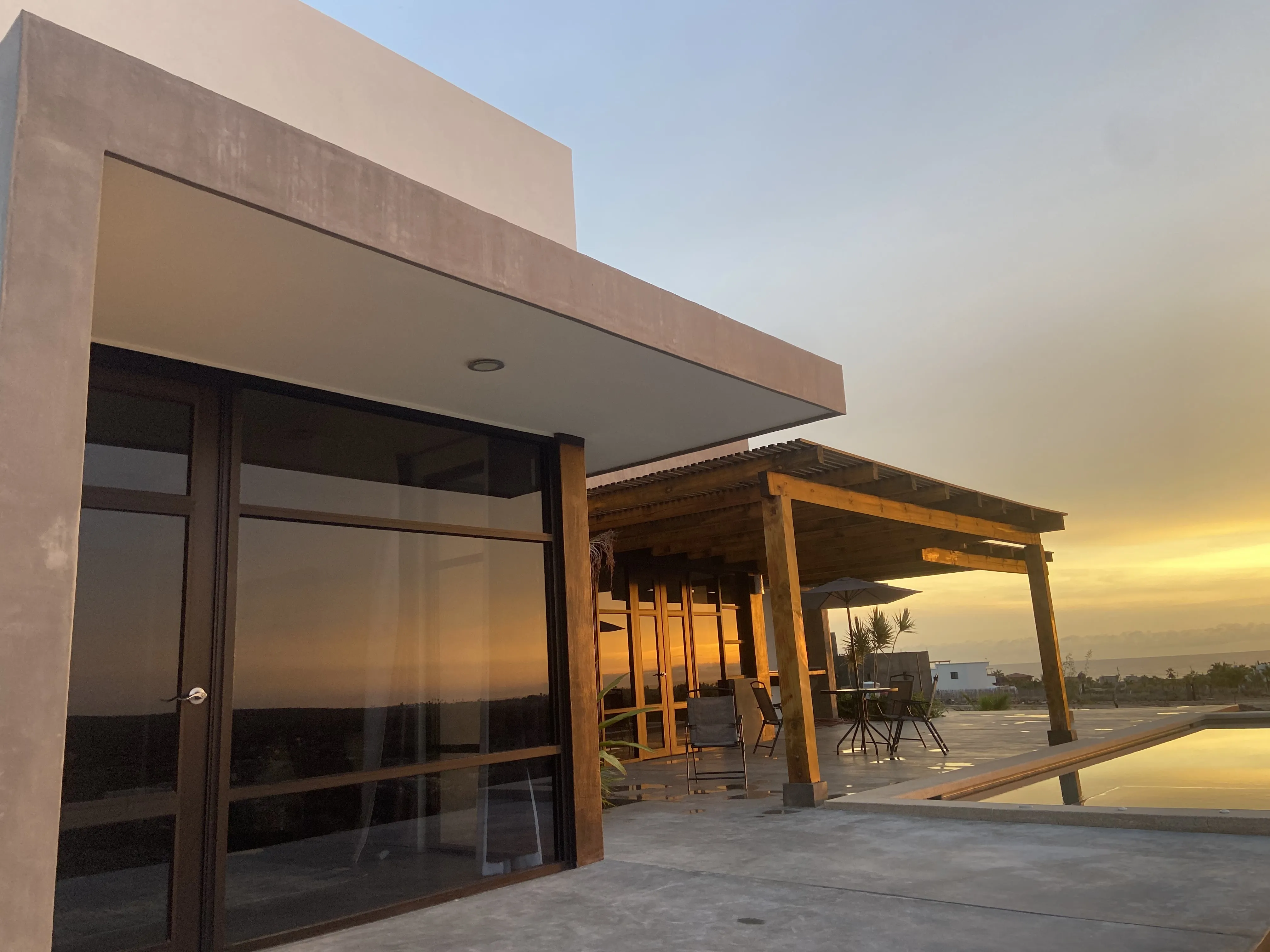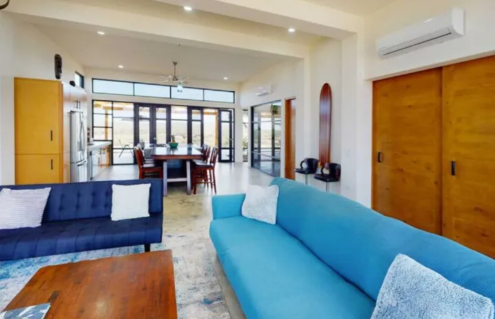 Downstairs: This 2 bedroom 2 bath modern home is beautifully designed with plenty of amazing ocean, farmland and mountain views. A/C units, plenty of space, LED light colored pool and tub, both heated, are just some of the amenities The home offers plenty of outdoor living and is very well located, close to a world class surf break, La Pastora surf beach. The home also features Starlink Wifi, a new BBQ grill , landscaped atrium, a very well equipped kitchen, accessible from the pool area, and drinkable water available from the home purification system.