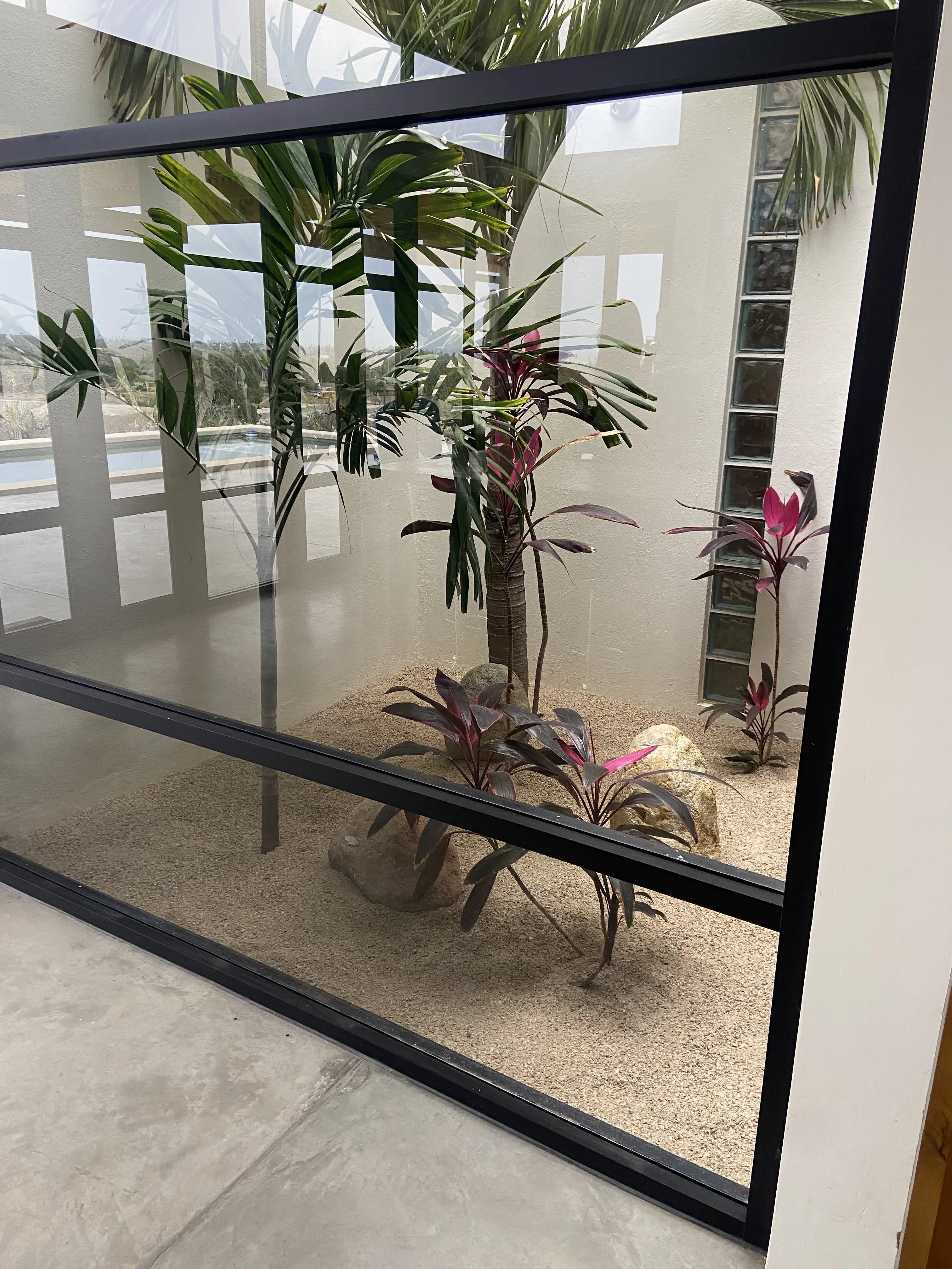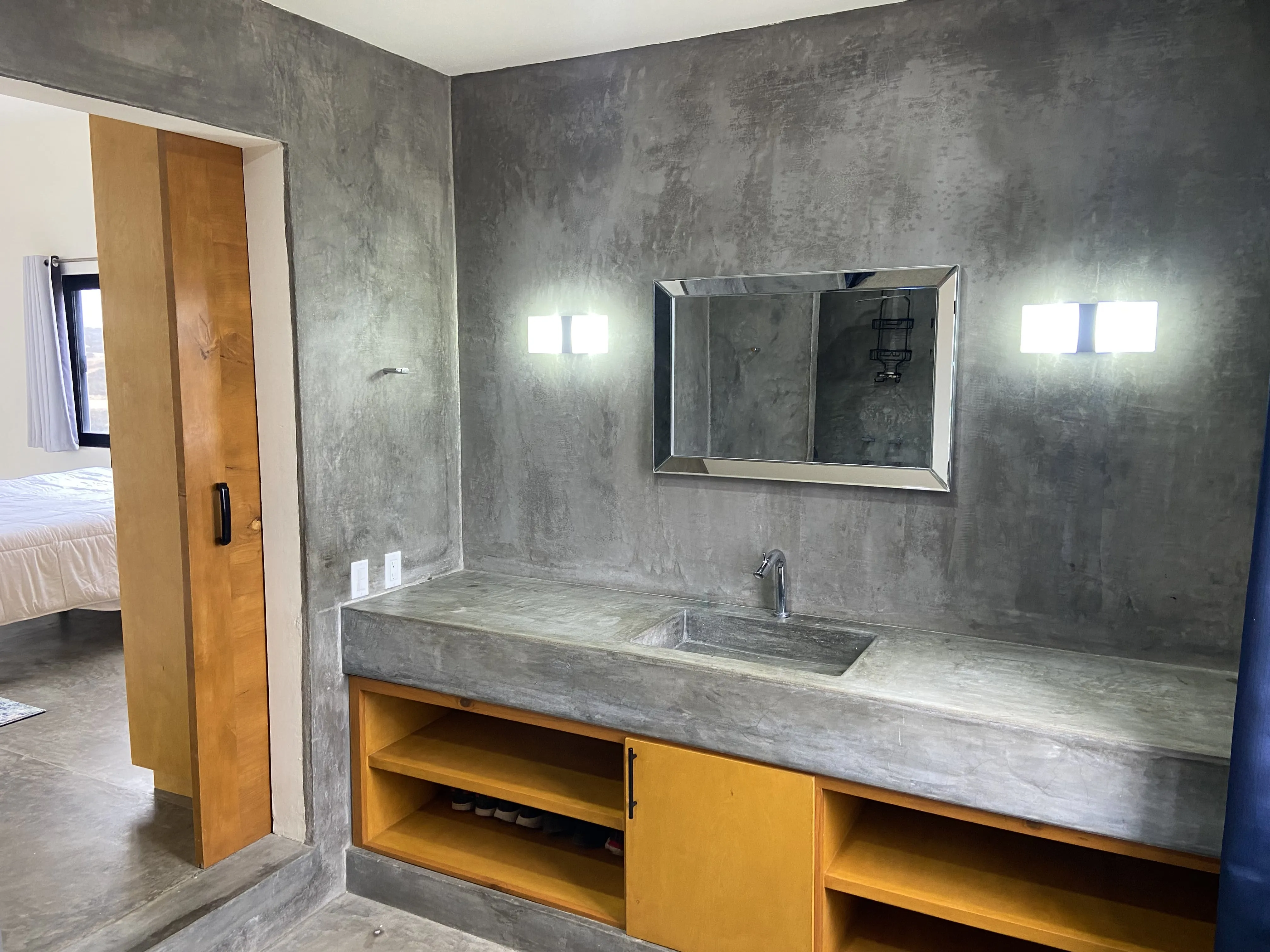 Honeymoon Suite: (The private upstairs one bedroom, one bath space is also included at an extra charge.) It has no shared area with the downstairs. If the downstairs only is rented, our caretaker stays in the upstairs. Marco Antonio speaks perfect English and Spanish, is a local resident of Todos Santos, and is a concierge at the fancy nearby hotel, Villa Santa Cruz.